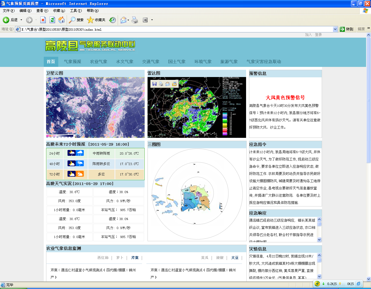 (2)农业气象预报:由农用天气预报、设施农业气象预报、特色农业天气预报、病虫害趋势预报组成。