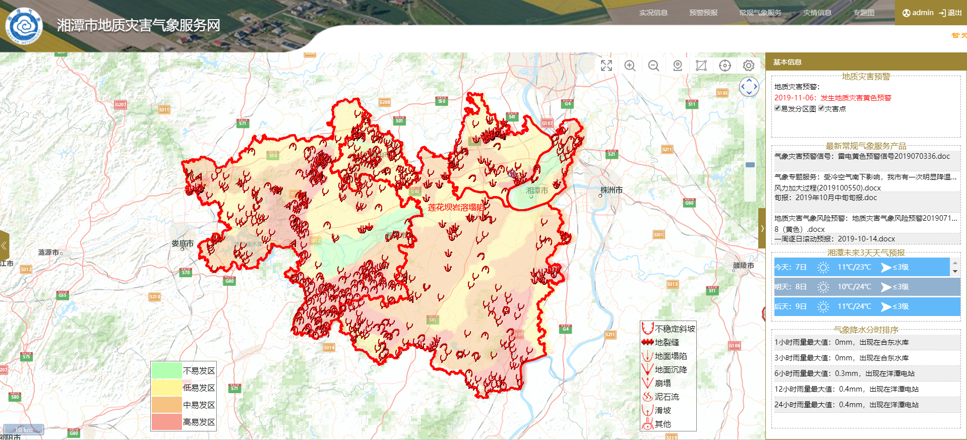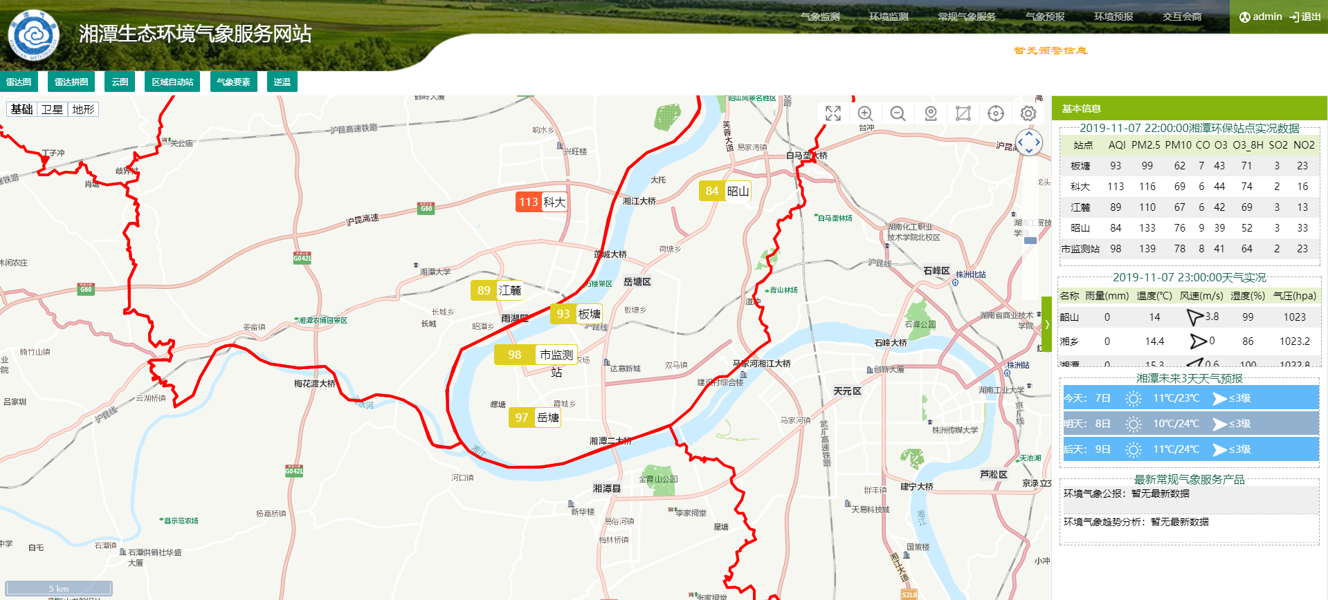 湖南湘潭智慧专业气象服务平台旨在依托互联网、智能感知、大数据挖掘等关键技术的综合应用,建立以技术为核心的智慧服务体系;基于大数据、机器学习技术,建立基于影响的行业企业气象服务指标、算法、模型,构建以用户为中心的商业气象服务供给体系。发展基于人工智能的行业气象服务产品生成和订正技术以及按需推送服务技术,实现服务产品按需生产、智能制作、精准推送;为使气象服务无缝“融”入到生产活动中,将气象数据结合到商业需要的不同场景中,把气象数据呈现出的商业价值包装成为更精准、更有行业特色的产品或服务,满足企业个性化需求,帮助政府、企业从天气中减少损失或盈利。