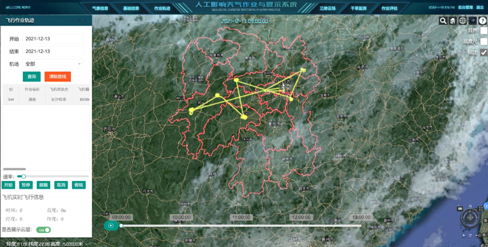 为提高人工影响天气信息综合管理能力和作业指挥能力,设计开发了基于气象大数据云平台的人工影响天气精准作业指挥与展示系统。系统基于国内自主研发的GIS平台DMGIS,集成湖南省高分遥感地理信息数据、人影信息数据以及气象监测数据,实现湖南人影作业全域精细化三维地理场景的漫游展示,人影作业飞行轨迹回放,作业效果评估,以及人影、气象信息空间可视化分析展示等功能,同时系统可实现三维GIS的基本功能。系统的建设为湖南人影业务完全三维空间GIS可视化和安全作业提供了技术支持。