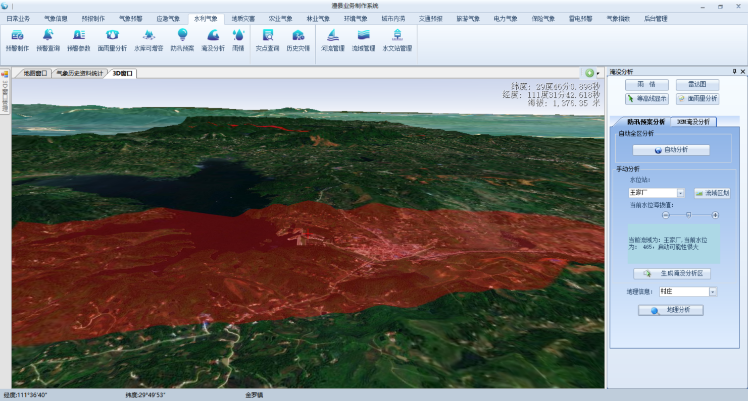 本平台采用3S集成技术、大数据、云计算的技术路线,在云端汇集软硬件及网络的基础设施、海量数据信息、核心模型算法及信息化应用成果等资源,立足充分运用气象大数据及气象专项服务技术,开展水利气象服务及其在防灾减灾、生态环境、提质增效上的信息化应用,开展气象大数据的分析研究、气象服务产品的设计研发、气象服务的常态运营,建设水利气象服务发展的生态环境体系、支撑服务体系及集成管理体系,加快气象服务大数据及技术资源的开放共享。
